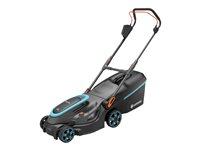 De motoriserede plæneklippere fås med forskellig drivmiddel og i forskellige størrelser. Mest almindelig er stadig plæneklippere med benzinmotor. Mere sjælden er eldrevne plæneklippere med ledning. De er stort set udgået af produktion i dag.